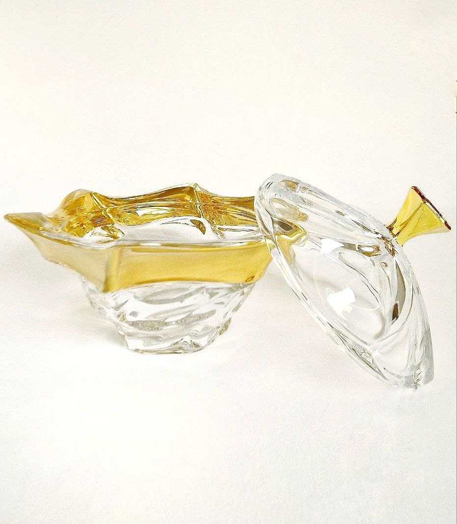 Authentic Czech crystal candy box- flamenco, which is gold plated by our master painters just for our store Dimensions: diametar 205 mm Take a look similar nice things: Crystal box- bamboo SOMETHING ABOUT BOHEMIA TREASURY Latin equivalent of Bohemia, originally Boiohaemum is related with powerful Celts people called Bojas. Vladimír Salač (60) is the archaeologist with specialization for Laten times and Older Roma age. Archaeological institute has discovered three original references to the word BOHEMIA. Greek writing Strabón and Latens Velleia Petercula and Tacita as the firsts recorded the words Búiaimon respective Boiohaemum. This happened in the first century after Christ when in the Middle Europe the Germans have already resided. In all the books is standing now that the name Boiohaemum has been given to Czech by the tribe of Bojas. But the substantial fact has been missed. This word is German origin and originally it sounded Baia-heim. The home of Bojas or the best translation would probably be There where the Bojas live.The real territory of Bojas - Boiohaemum has been located from Würzburg (Bavarian Germany) up to Ostrava city (east of Czech Republic). So this is the original region settled by the Bojas tribe – territory of BOHEMIA today by mistake and ignorance connected only with Czech. Bohemia Treasury offers exceptional product development and production services, utilizing some of the most talented designers in Czech Republic and most modern & technologically advanced production lines like this gorgeous candy box- flamenco. We carry a great line of products that are being sold worldwide. https://www.bohemiatreasury.cz/en/about-us/