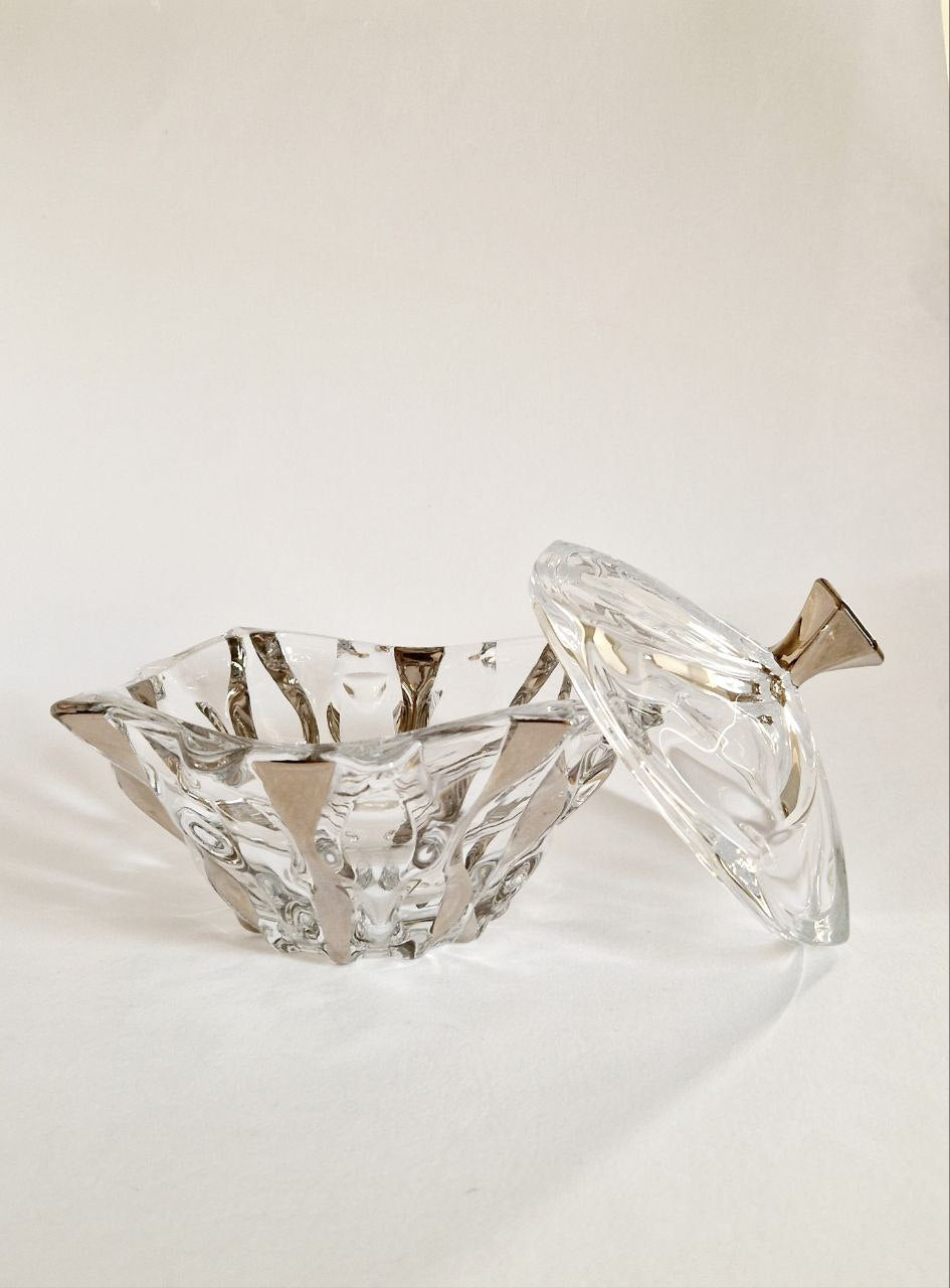 Authentic Czech candy box- samba, which is platinum plated by our master painters just for our store Dimensions: diameter 210 mm Take a look similar nice things: Crystal Box- Pyramid SOMETHING ABOUT BOHEMIA TREASURY Latin equivalent of Bohemia, originally Boiohaemum is related with powerful Celts people called Bojas. Vladimír Salač (60) is the archaeologist with specialization for Laten times and Older Roma age. Archaeological institute has discovered three original references to the word BOHEMIA. Greek writing Strabón and Latens Velleia Petercula and Tacita as the firsts recorded the words Búiaimon respective Boiohaemum. This happened in the first century after Christ when in the Middle Europe the Germans have already resided. In all the books is standing now that the name Boiohaemum has been given to Czech by the tribe of Bojas. But the substantial fact has been missed. This word is German origin and originally it sounded Baia-heim. The home of Bojas or the best translation would probably be There where the Bojas live.The real territory of Bojas - Boiohaemum has been located from Würzburg (Bavarian Germany) up to Ostrava city (east of Czech Republic). So this is the original region settled by the Bojas tribe – territory of BOHEMIA today by mistake and ignorance connected only with Czech. Bohemia Treasury offers exceptional product development and production services, utilizing some of the most talented designers in Czech Republic and most modern & technologically advanced production lines like this gorgeous crystal candy box- samba. We carry a great line of products that are being sold worldwide. https://www.bohemiatreasury.cz/en/about-us/