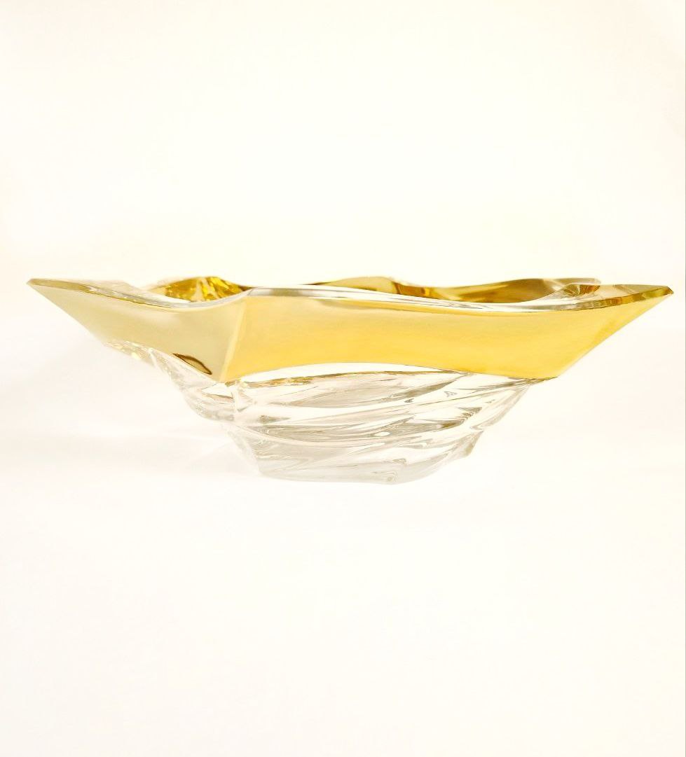 Authentic Czech crystal bowl- flamenco, which is gold plated by our master painters just for our store Dimensions: diametar 330 mm Take a look similar nice things: colour crystal bowl- samba SOMETHING ABOUT BOHEMIA TREASURY Latin equivalent of Bohemia, originally Boiohaemum is related with powerful Celts people called Bojas. Vladimír Salač (60) is the archaeologist with specialization for Laten times and Older Roma age. Archaeological institute has discovered three original references to the word BOHEMIA. Greek writing Strabón and Latens Velleia Petercula and Tacita as the firsts recorded the words Búiaimon respective Boiohaemum. This happened in the first century after Christ when in the Middle Europe the Germans have already resided. In all the books is standing now that the name Boiohaemum has been given to Czech by the tribe of Bojas. But the substantial fact has been missed. This word is German origin and originally it sounded Baia-heim. The home of Bojas or the best translation would probably be There where the Bojas live.The real territory of Bojas - Boiohaemum has been located from Würzburg (Bavarian Germany) up to Ostrava city (east of Czech Republic). So this is the original region settled by the Bojas tribe – territory of BOHEMIA today by mistake and ignorance connected only with Czech. Bohemia Treasury offers exceptional product development and production services, utilizing some of the most talented designers in Czech Republic and most modern & technologically advanced production lines like this gorgeous crystal bowl- flamenco. We carry a great line of products that are being sold worldwide. https://www.bohemiatreasury.cz/en/about-us/