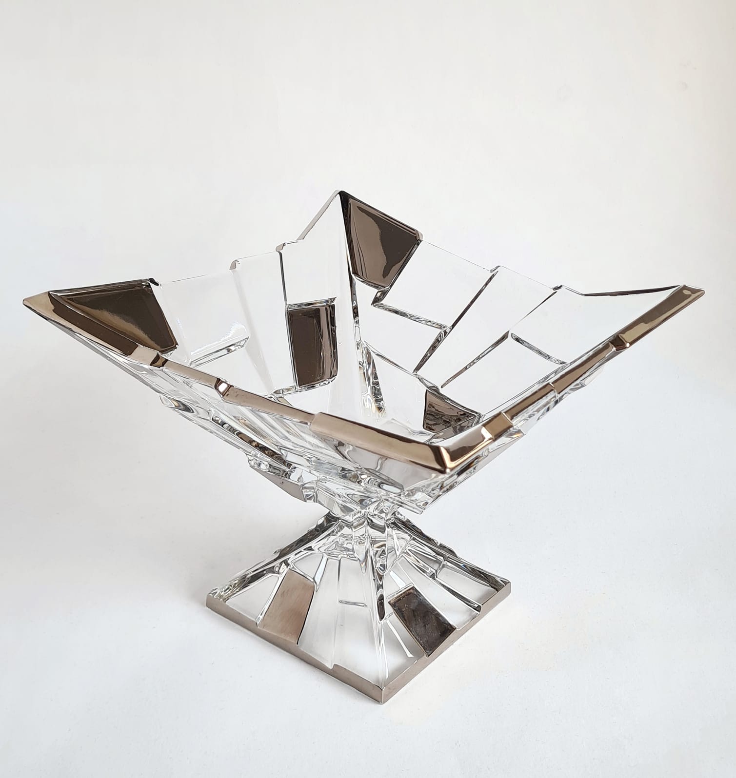 Authentic Czech crystal bowl on foot- sydney, platinum plated by hand exclusively for our store Take a look at similar nice things: Crystal gold bowl on foot- bamboo BRIEF HISTORY OF BOHEMIA JIHLAVA In 1845, Karl Anton established a glass factory in Antonínův Důl, near Jihlava in the Bohemian-Moravian Highlands. This marked the beginning of Bohemia Jihlava’s journey in artisanal glassmaking. Anton used the region’s natural resources and local glassmaking techniques to create a successful glass production empire. The rich cultural traditions of the Bohemian-Moravian Highlands played a vital role in shaping Bohemia Jihlava’s legacy in traditional glassmaking. The land of Bohemia already gained great fame during the Renaissance for its beautiful and colorful glass. The discovery of new materials and techniques by Bohemian glass-workers was to ahead, their clear glass win even Italian glass in quality. The term „Bohemian crystal“ was coined in the 16th century to contrast it from glass made elsewhere. Czech crystal gained global recognition for its meticulous craftsmanship and traditional techniques. Bohemia Jihlava prioritizes heritage, quality, and craftsmanship in upholding its reputation in the crystal market over our whole time of existence. Bohemia Jihlava stands out in the design world by blending tradition and timelessness, example is this beautiful crystal bowl on foot- sydney. Our design celebrates raw beauty and creating products that embody enduring values and rich Czech heritage. This devotion to precise design is not just a milestone in the company’s history, but a guiding example that continues to shape our future. https://www.bohemiajihlava.com/