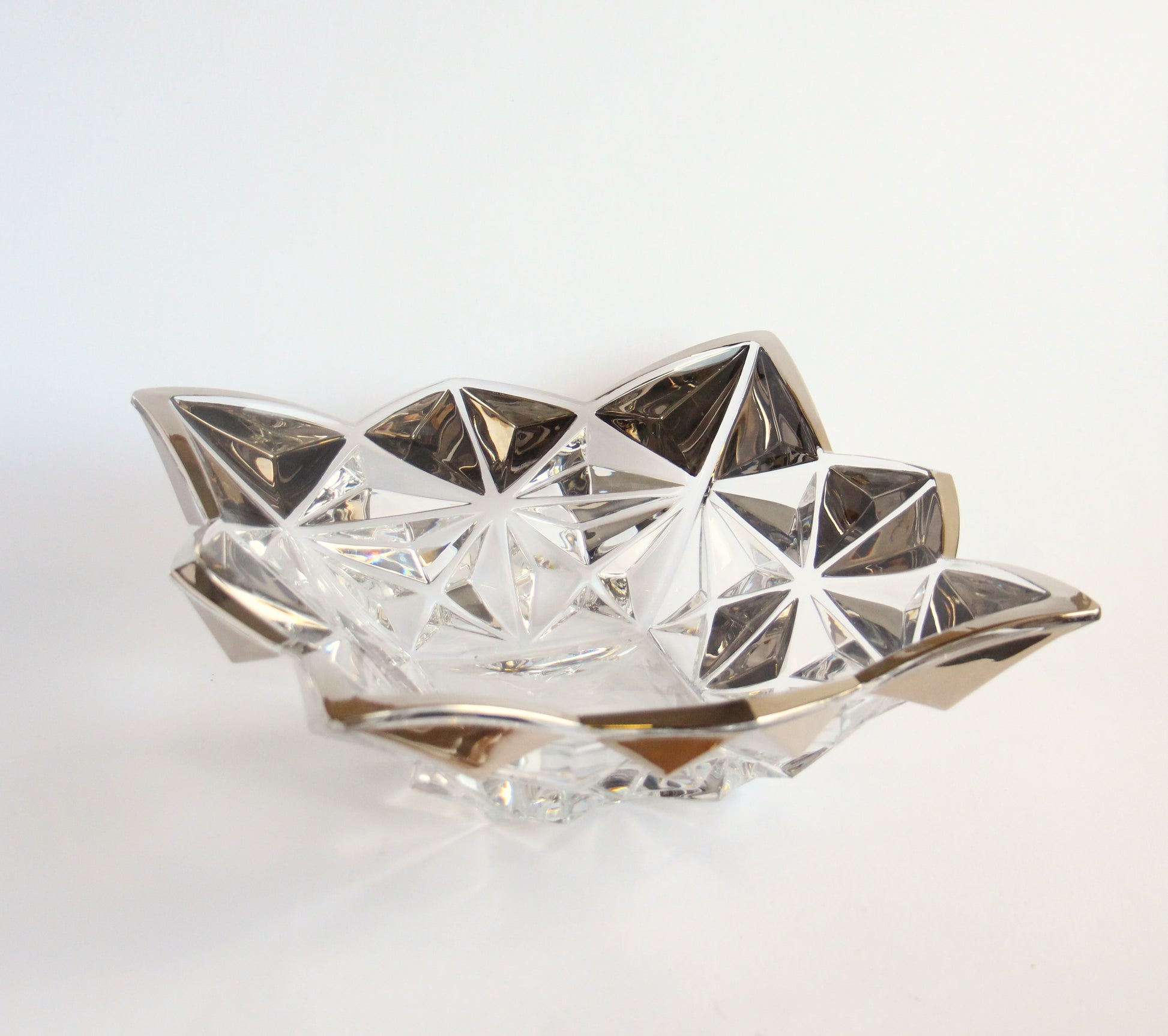 Authentic Czech crystal bowl, platinum plated exclusively for our store. Dimensions: 30 x 11 cm