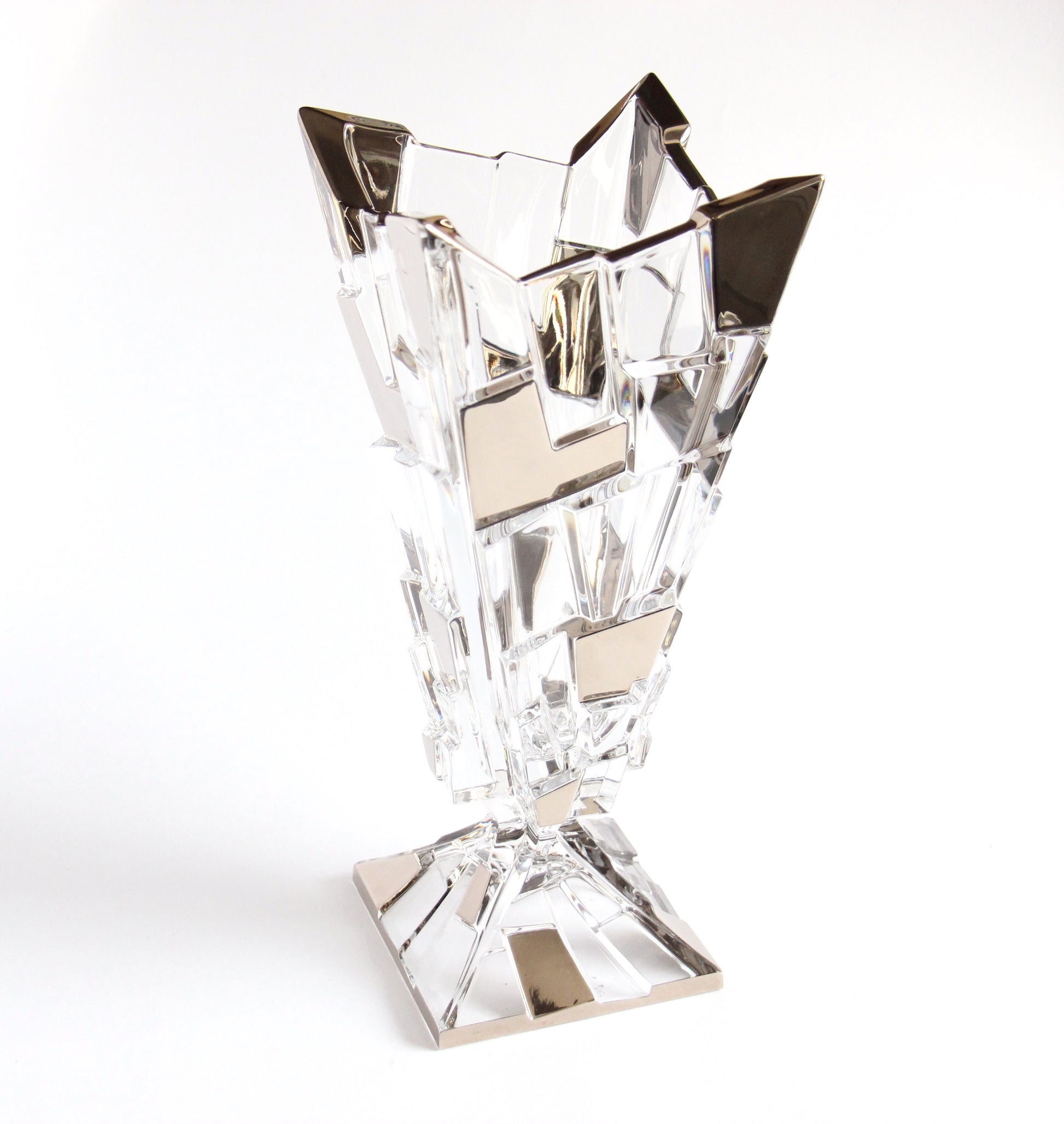 Authentic Czech crystal vase , platinum plated exclusively for our e-store The vase is elevated by a foot giving it additional elegance and a dash of luxury