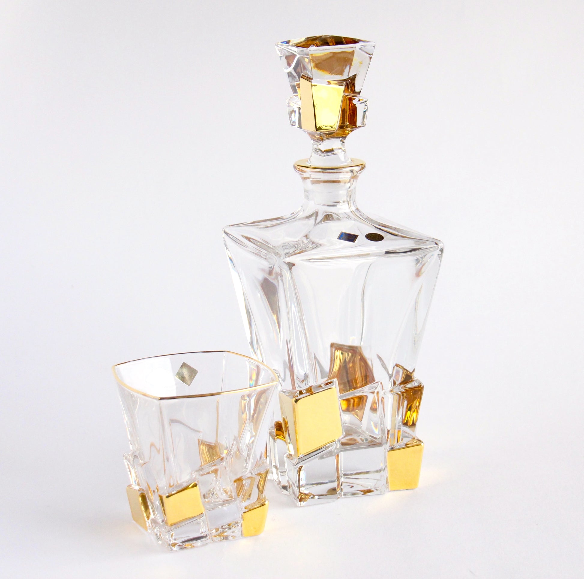 Authentic Czech crystal whisky gold set- crack, gold plated exclusively for our e-store Set contains 6 pcs Dimensions: 10.5 cm Take a look at similar nice things: Crystal vase on foot with gold - Lisboa BRIEF HISTORY OF BOHEMIA JIHLAVA In 1845, Karl Anton established a glass factory in Antonínův Důl, near Jihlava in the Bohemian-Moravian Highlands. This marked the beginning of Bohemia Jihlava’s journey in artisanal glassmaking. Anton used the region’s natural resources and local glassmaking techniques to create a successful glass production empire. The rich cultural traditions of the Bohemian-Moravian Highlands played a vital role in shaping Bohemia Jihlava’s legacy in traditional glassmaking. The land of Bohemia already gained great fame during the Renaissance for its beautiful and colorful glass. The discovery of new materials and techniques by Bohemian glass-workers was to ahead, their clear glass win even Italian glass in quality. The term „Bohemian crystal“ was coined in the 16th century to contrast it from glass made elsewhere. Czech crystal gained global recognition for its meticulous craftsmanship and traditional techniques. Bohemia Jihlava prioritizes heritage, quality, and craftsmanship in upholding its reputation in the crystal market over our whole time of existence. Bohemia Jihlava stands out in the design world by blending tradition and timelessness, example is this beautiful crystal whisky gold set- crack. Our design celebrates raw beauty and creating products that embody enduring values and rich Czech heritage. This devotion to precise design is not just a milestone in the company’s history, but a guiding example that continues to shape our future. https://www.bohemiajihlava.com/