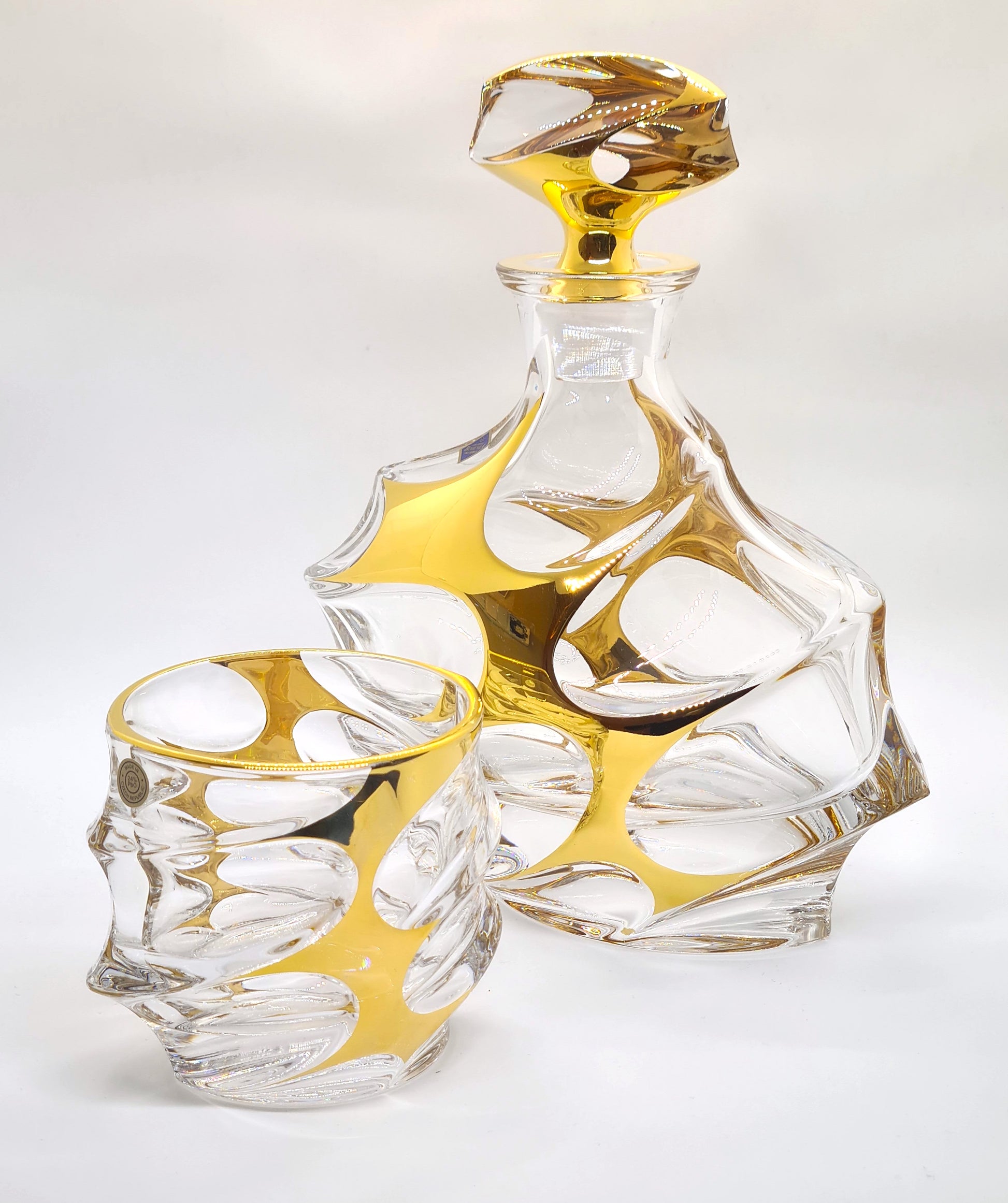 Crystal whisky set- calypso, gold plated for our e-store Dimensions: 9.5 cm Set contains 6 pcs Take a look at similar nice things: Whisky gold set- bossanova BRIEF HISTORY OF BOHEMIA JIHLAVA In 1845, Karl Anton established a glass factory in Antonínův Důl, near Jihlava in the Bohemian-Moravian Highlands. This marked the beginning of Bohemia Jihlava’s journey in artisanal glassmaking. Anton used the region’s natural resources and local glassmaking techniques to create a successful glass production empire. The rich cultural traditions of the Bohemian-Moravian Highlands played a vital role in shaping Bohemia Jihlava’s legacy in traditional glassmaking. The land of Bohemia already gained great fame during the Renaissance for its beautiful and colorful glass. The discovery of new materials and techniques by Bohemian glass-workers was to ahead, their clear glass win even Italian glass in quality. The term „Bohemian crystal“ was coined in the 16th century to contrast it from glass made elsewhere. Czech crystal gained global recognition for its meticulous craftsmanship and traditional techniques. Bohemia Jihlava prioritizes heritage, quality, and craftsmanship in upholding its reputation in the crystal market over our whole time of existence. Bohemia Jihlava stands out in the design world by blending tradition and timelessness, example is this beautiful crystal whisky set- calypso. Our design celebrates raw beauty and creating products that embody enduring values and rich Czech heritage. This devotion to precise design is not just a milestone in the company’s history, but a guiding example that continues to shape our future. https://www.bohemiajihlava.com/