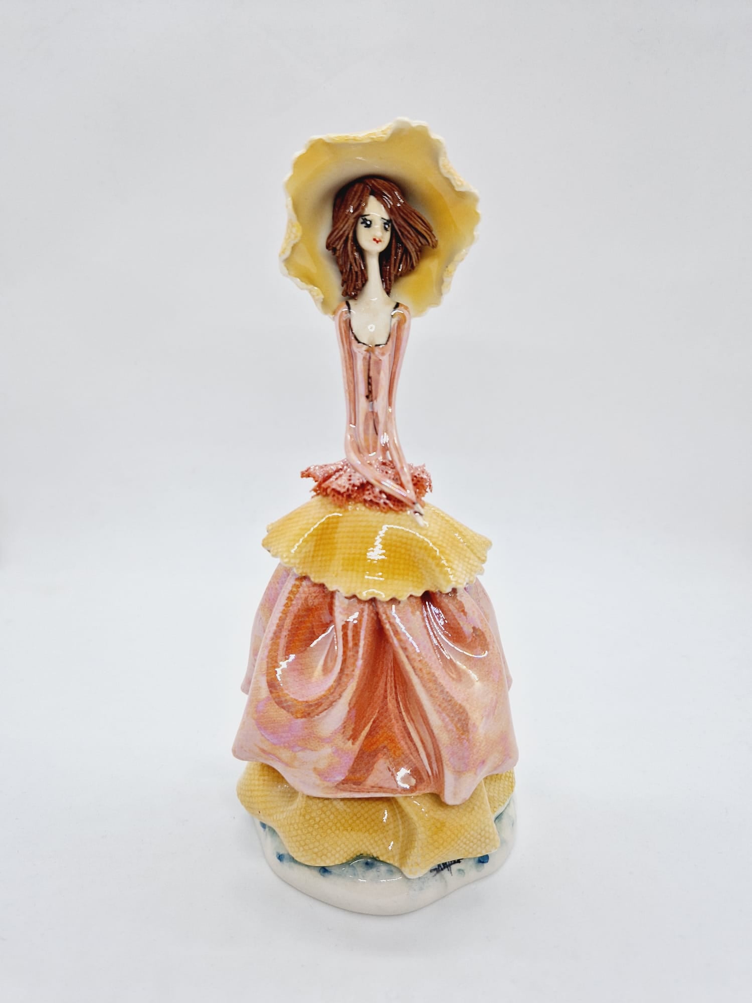 Entirely hand made porcelain figurine of lady with crossed palms 100% made in Italy. Dimensions: 21 cm Check out also this product: lady statue- pink dress THE WORLD OF ZAMPIVA Lino Zampiva founded PASTELCERAMICA SnC in Montebello Vicentino, Italy, in 1976 . Mr. Zampiva graduated from the school of Arts and Crafts , where he learned how to make potter’s earth ductile and malleable . His passion for painting and sculptures led him to create the fabulous collection of figurines popular with collectors worldwide. The world of Zampiva is a world of beautiful colours , humour, fun, beauty and fantasy . The Zampiva figurines consist of unique characteristics: each figurine is individually handcrafted , handpainted with particular care like this beautiful lady with crossed palms, for each detail by Lino Zampiva and his team of artists. Process: Figurines are first sketched on paper, then created using a very soft kaolinite, followed by the drying process. After hand painting, figurines are then baked at a temperature of 950 degrees Celsius Sculptures that are painted with gold or have a pearl fisnish, are baked at 750 degrees Celsius. For those who want to know more: https://artsandculture.google.com/story/mwXBqEQiw0JaLA?hl=eng