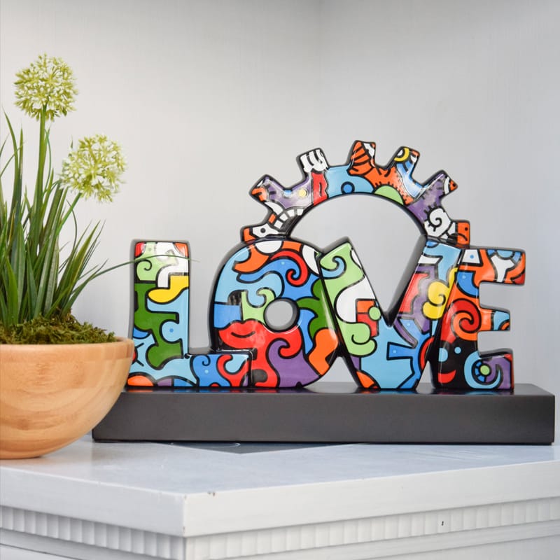 "Love"- pop art, 100% made of German Porcelain Designed exclusively by Romero Britto, famous Brazilian designer for Goebel Porzellan Dimensions: 38 x 12 x 26 cm See more: Frog queen- pop art SOMETHING ABOUT The brand Goebel, means the highest standards of quality. Since the founding of the company, special emphasis has always been given to artistic expression, quality and the finest craftsmanship. At Goebel you experience how, in close cooperation with renowned artists and designers, objects of porcelain, glass and similar materials become something very special. This is what the founders envisioned, and this is what quickly made Goebel an international success story. In February 2011 Goebel successfully entered the world of Pop Art with the launch of the Romero Britto range. Ever since, Goebel succeeded in enthusing contemporary artists to work with porcelain and glass. Great paintings and daring designs become objects of perfect craftsmanship. The transformation of the Pop Art motives onto porcelain and glass is done in close cooperation with the artists to bring out the best of their unique style. Romero Britto uses vibrant colours and bold patterns as a visual language of hope and happiness. He has been credited with the largest public art installation in Hyde Park history and exhibited at the Louvre Museum - an art that appeals to all! His works of art are primarily devoted to the topics of love, friendship, hope and joy. Learn more: https://theculturetrip.com/south-america/brazil/articles/a-splash-of-colour-the-work-of-romero-britto