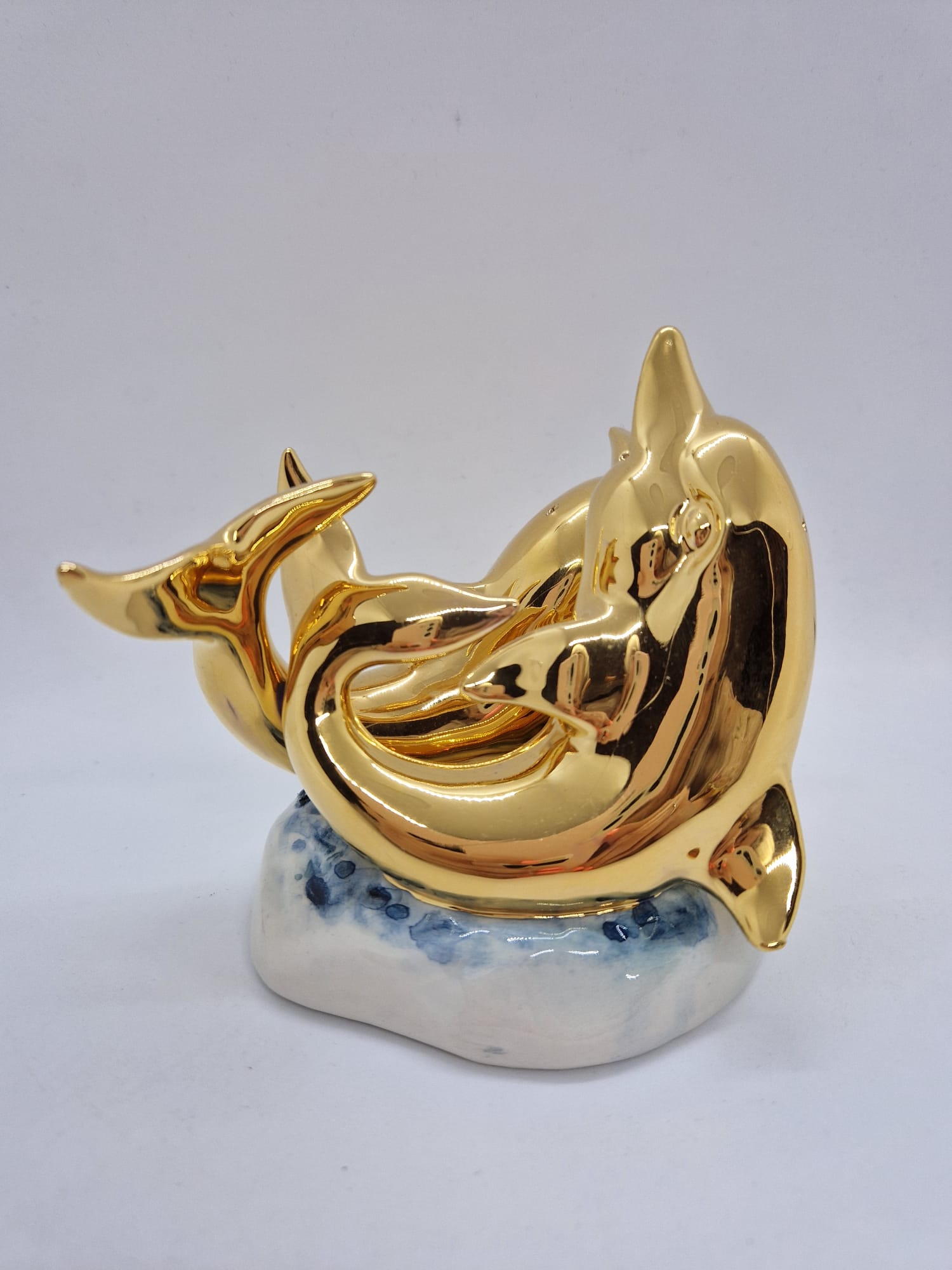 Entirely hand made porcelain figurine of playing dolphins 100% made in Italy. Dimensions: 10 cm Check out also this product: lady statue- pink dress