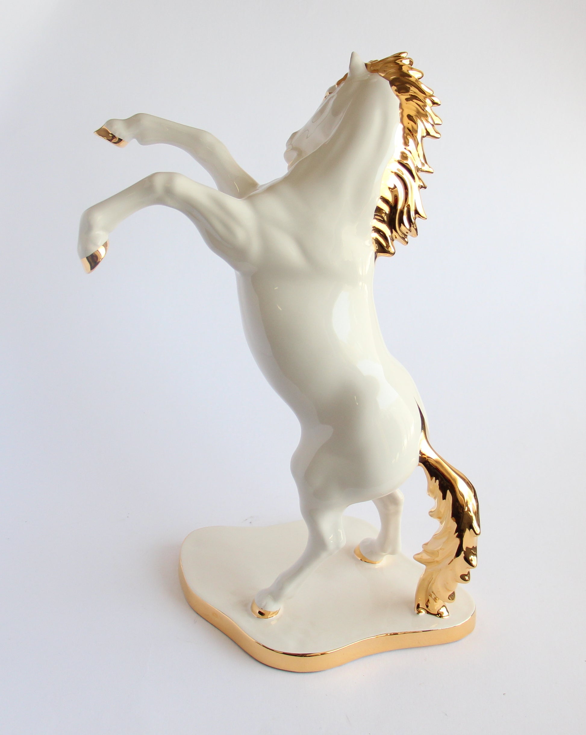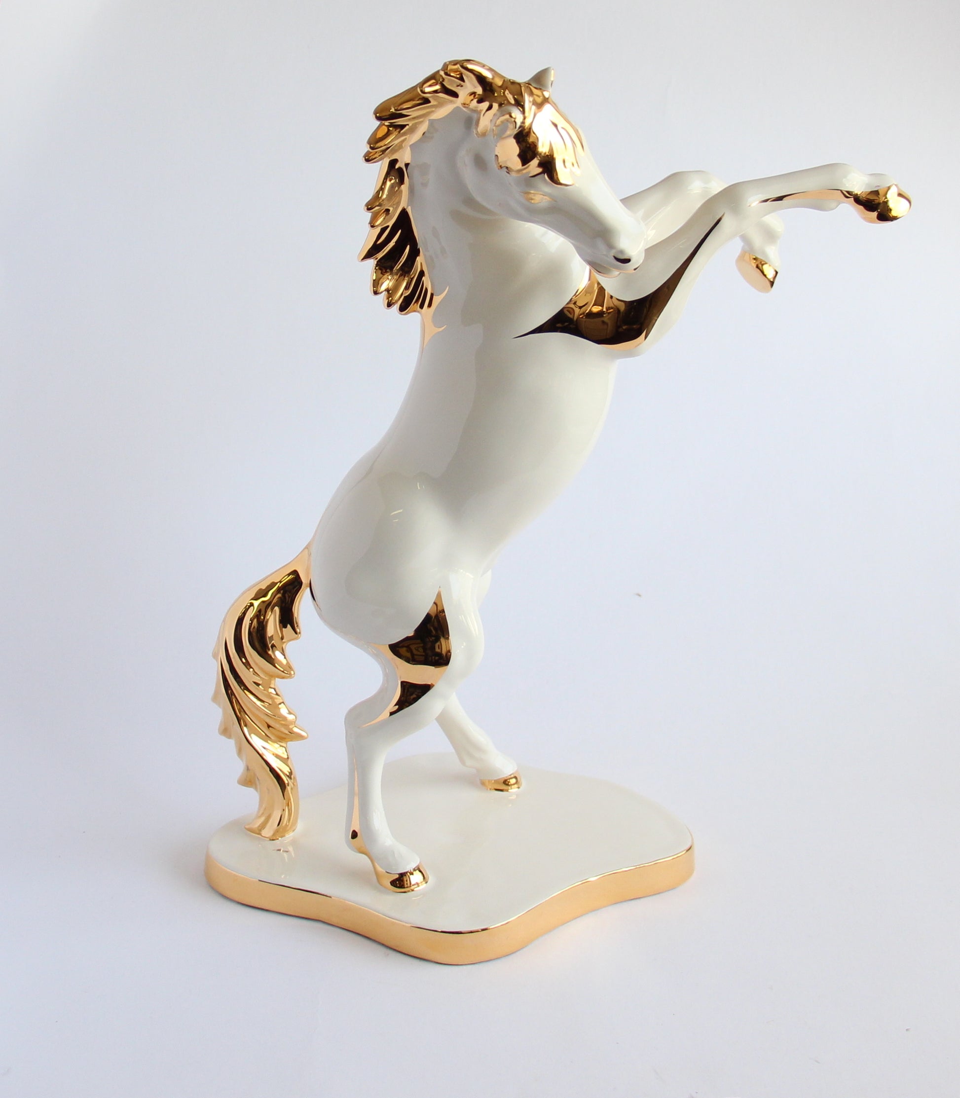 White and golden horse, 100 % hand made of porcelain in Italy Dimensions: 41 cm