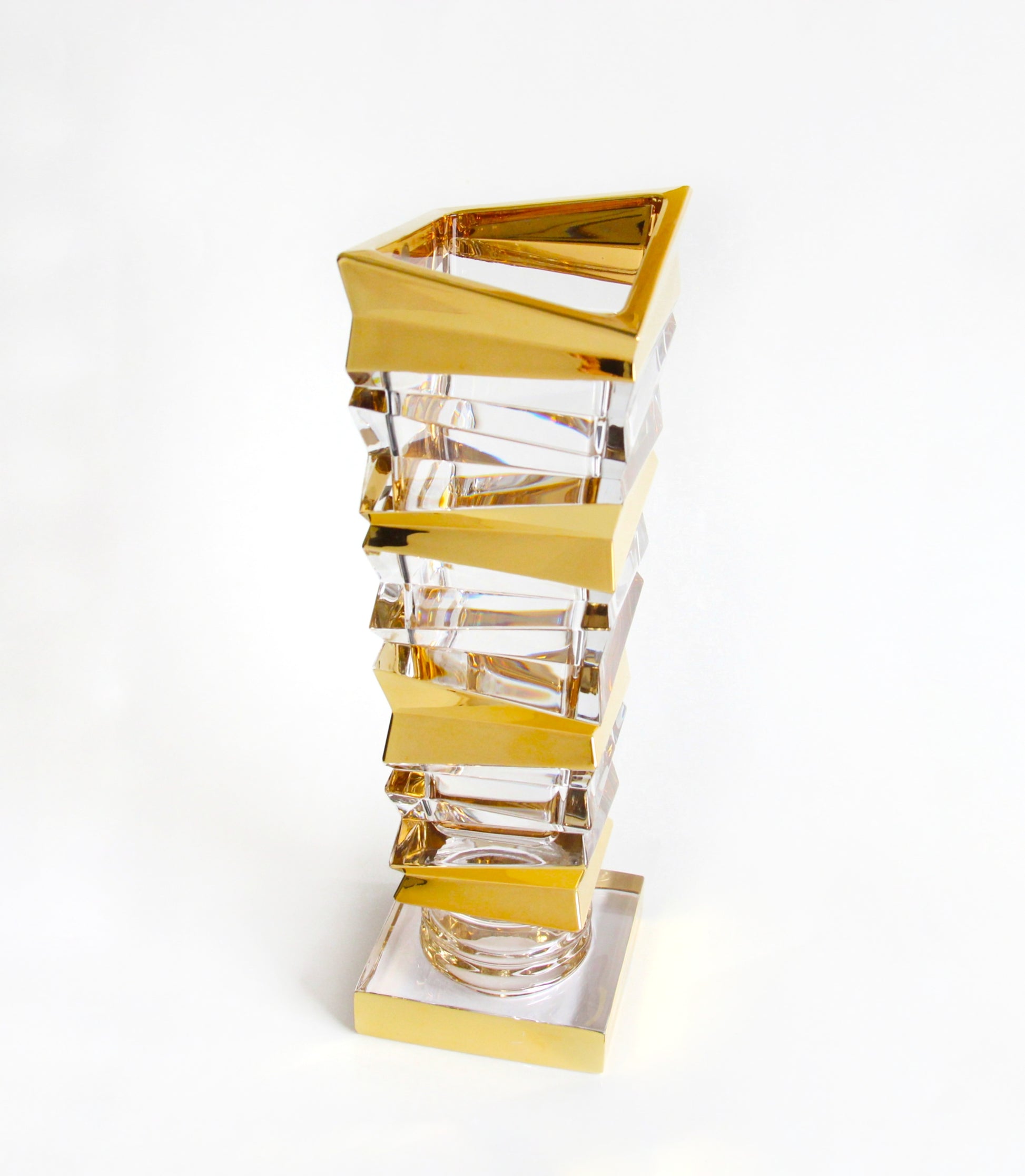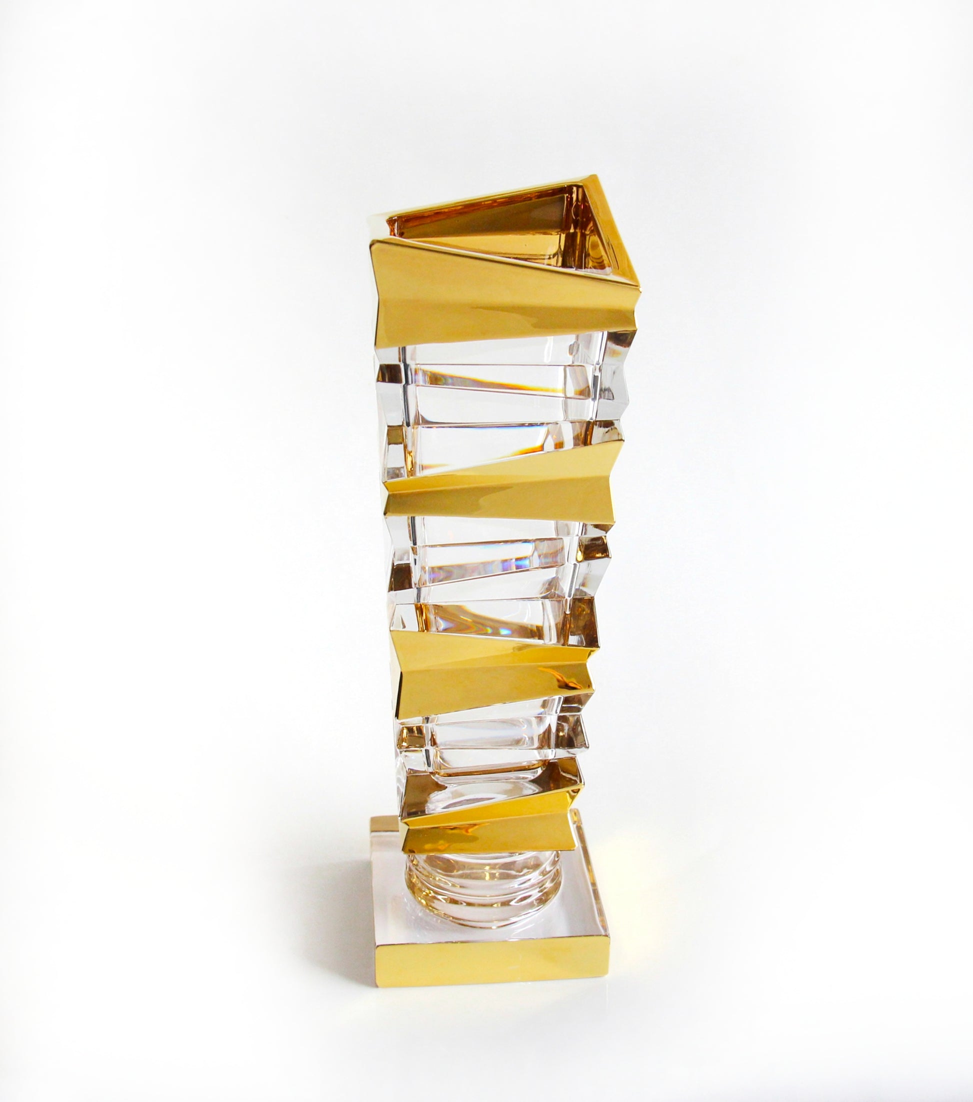 Authentic Czech crystal vase on foot, gold plated for our e-store with the beautiful foot to give extra elegance